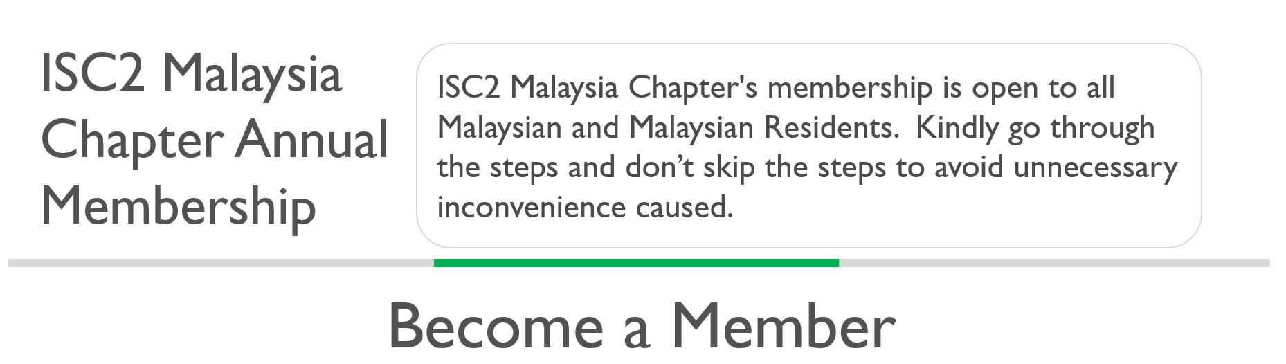 Must be a student at a local institution of higher learning with interest in the purpose and objectives of ISC2 Malaysia Chapter and a non-working adult.
